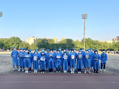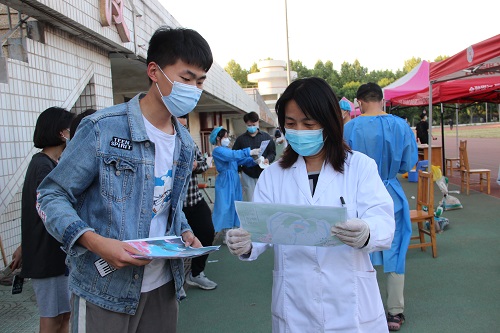 首先,工作人员将选出的优秀作品送给学院党委副书记钟丽霞和辅导员,以此感谢他们在疫情期间一直陪伴着同学们共同抗疫,感谢他们的辛勤付出。钟丽霞和辅导员们纷纷表示收到作品时感受到了同学们的用心,并坚信学校师生会共同打赢这场“战疫”。紧接着,工作人员来到第二体育场,将优秀作品赠与参与核酸检测工作的医护人员和校园志愿者,表达对他们无私奉献的感激之情。医护人员和校园志愿者表示一定会继续为抗疫斗争献出自己的一份力,与大家共同战胜这场疫情。