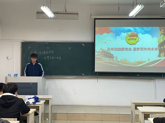 紧接着,潘文博引领同学们学习习总书记对于共青团做出的指示和要求。学习内容主要包括三个方面:坚持为党育人,引领思想进步;自觉担当尽责,成为奋斗的先锋力量;心系广大青年,成为党的最为牢固的桥梁纽带。共青团是党领导的群团组织,更是勇于自我革命,始终紧跟党走在时代前列的先进组织。他认为同学们需坚持以党领导的信念为目标,同时增强政治素养和提高政治觉悟。
