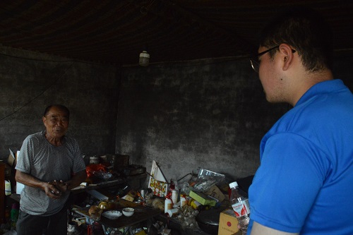7月7日上午,“E路先锋”实践团继续在莒南金沟官庄村寻访慰问老党员汲立枚和贫困户唐学胜。汲立枚向队员们讲解以前的艰苦条件,在道路不便的情况下,年轻妇女为前线战士纳草鞋、缝布衣送过去。在老人的口中,我们深切了解到顶着炮火支援前线的许许多多妇女儿童的故事,她们坚守在后方,以少有人知的“小推车”为和平与安稳推出了牢靠的地基。
