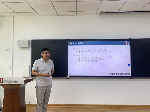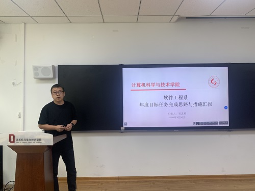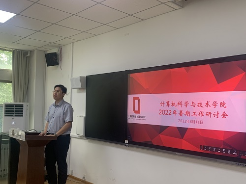 研讨会共分为三个环节,首先是由各系部主任汇报未来3-5年的工作方向和计划。计算机科学系主任王海鹏从社会服务、教育教学、科学研究三个方面进行了全方面的规划,不断加强协同育人机制,完善创新实践教学体系,推进新工科建设;软件工程系主任吴志勇和数据科学系主任王振则是侧重在人才引进和课程建设方面,提出部分系部的教授人数偏少,教师配置出现不平衡的现象,并为此做了详细的分析,各自提出了人才引进和晋升的新方法、新途径;通信工程系主任孙鉴和数字媒体技术系主任常征以科学研究与服务社会为主攻点,从问题导向出发分别制定了具体措施;“图灵班”班主任王绍卿提出要在培养模式和选拔方案上不断精进创新;基础教学部主任李业刚提出将持续探索大学计算机公共课程体系和资源建设,推进协同育人,培养计算与计算思维;实验中心主任于振海强调一定会与学校协同配合,积极做好学校、学院组织的各类竞赛、考试、培训等任务。