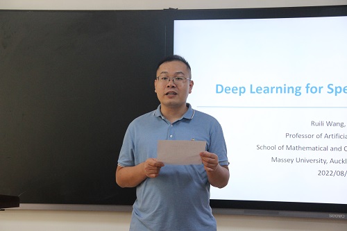 9月5日下午,计算机学院邀请Wang Ruili教授在9号教学楼211教室开展以《人工智能的研究及在语言降噪方面的应用》为主题的学术报告。计算机学院副院长王志强、王雷,院长助理孙福振,学院部分教师以及全体研究生参加聆听此次学术讲座。