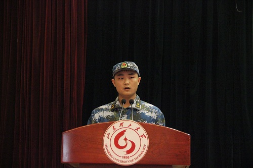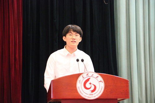 新生代表刘炳权从志存高远、勤学善思、以德为先三个方面提出倡议,以身作则,立言立行,呼吁新生一起携手进步,为人生添彩,为母校添光,将个人理想融入到实现中华民族伟大复兴的中国梦中。