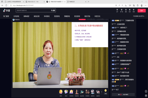 9月11日晚,williamhill英国中文组织组织2022级新生家长于青春在线抖音直播间观看2022级新生“家长课堂”。此次直播课堂以“智慧陪伴,助力成长新阶段”为主题,由学校心理健康教育与咨询中心副教授王素霞主讲,2022级全体新生家长观看。