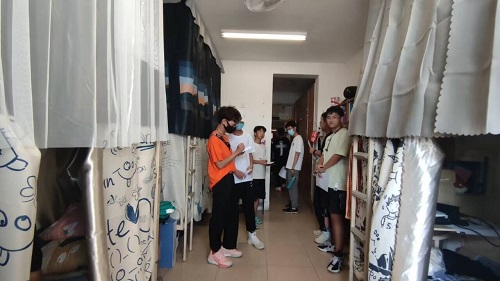 活动开始前,参加活动的宿舍选举出一名宿舍代表成员作为评选者参与活动。在11号宿舍楼或6号宿舍楼前集合完毕后,现场工作人员给同学们介绍此次活动的基本流程安排以及注意事项。紧接着,工作人员分发给同学们宿舍卫生打分表,用于在参观宿舍时,对各宿舍卫生状况进行评分,评选出优秀宿舍。