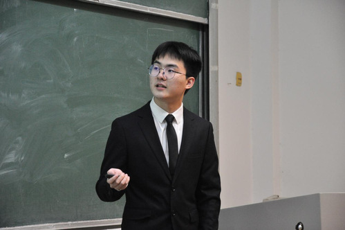 一号候选人方恺鹏讲述了大学学习成绩名列前茅,曾获得校级、国家级奖学金,获得山东省优秀学生、校科创标兵等多项荣誉称号,同时积极参加科技竞赛,均取得优异成绩,为自身未来打下坚实的基础。他从学习、社会实践以及科技创新三个方面展示了自己获得的成果,鼓励同学要积极参加各种竞赛与活动。