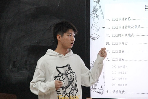 10月22日下午,williamhill英国中文在9号教学楼211教室组织“头雁计划”学生骨干活动策划案培训会,此次活动由秘书处工作人员宋晨琪与学习部工作人员褚天增担任主讲人,学生会各部门代表人员参加。