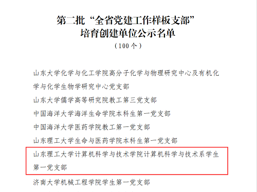 计算机科学与技术系学生第一党支部入选第二批山东省党建工作样板支部培育创建单位