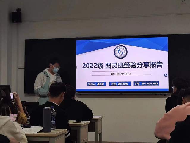 2022年11月7日晚7:30,优秀学长经验分享会于9#206顺利召开。2022级图灵班全体同学参加了经验分享会。优秀学生代表是计科2003的战泰霖同学和软件本2002张振同学。两位同学均获得了2022年度国家奖学金。