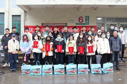 此次活动共有三个环节。首先,华蕾宣读获奖宿舍名单,并对获奖宿舍提出表扬鼓励。随后,王超与华蕾向获奖宿舍代表颁发荣誉证书与活动奖品,活动奖品主要是纸巾、香皂、洗衣液、香皂等宿舍生活用品。王超表示,希望评选出的优秀学风宿舍能够再获得荣誉后再接再厉,争取进一步提高宿舍卫生情况与学风质量,保持宿舍环境高标准,使得同学们能够进行健康高效学习生活。最后,参与此次活动的全体人员进行合影留念,活动落下帷幕。此次优秀学风宿舍颁奖活动结合上学期各宿舍卫生检查情况、日常作息规律情况、违规违章情况以及宿舍学风建设情况,共评选出46个获奖的优秀宿舍。此次活动秉持公平客观的原则在学院内择优评选,对于培养学生良好的生活习惯、学习习惯,对于鼓励学生坚持自律习惯、培养集体观念有着促进意义。