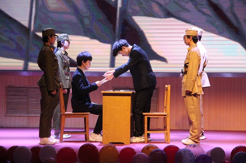 比赛流程分为两个部分,第一部分为播放班级宣传视频,介绍各班情况,第二部分班级团支部特色活动展示,通过演讲、话剧、歌舞、朗诵等多种形式向大家展示出班级风采和爱国情怀。