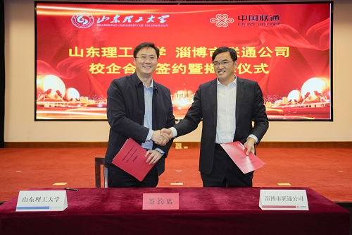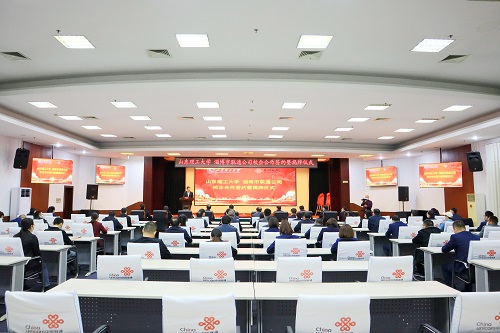 随后,计算机学院与淄博联通负责人共同签订“校企合作实践基地”、“研究生校企联合培养基地”、“就业实践基地”合作协议,与会领导共同上台揭牌。
