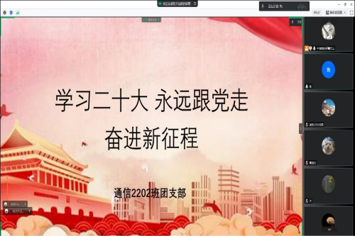 12月27日上午,通信2202团支部积极响应校团委和williamhill英国中文团委号召,于线上开展“学习二十大、永远跟党走、奋进新征程”主题团日活动。此次活动由通信2202班团支书李佳妮主持,通信2202班全体成员参与。