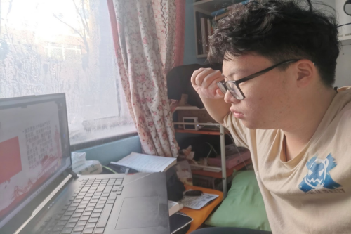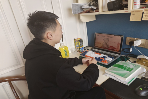 此次活动共分为观看党的二十大开幕会、重温入团誓词和共唱团歌三部分。活动伊始,李佳妮简要介绍活动流程及活动目的,并播放中国共产党第二十次全国代表大会开幕会直播回放,团支部全体成员共同观看开幕大会。观看过程中,成员们全神贯注,认真学习党的二十大内容与精神。开幕会观看结束后,支部全体成员在李佳妮的带领下进入团员仪式教育环节。学生们面向屏幕中的共产主义青年团团旗,高举右拳重温入团誓词,并共唱团歌,在铿锵有力的誓词与高亢的歌声中增强自己作为共青团员的使命感。