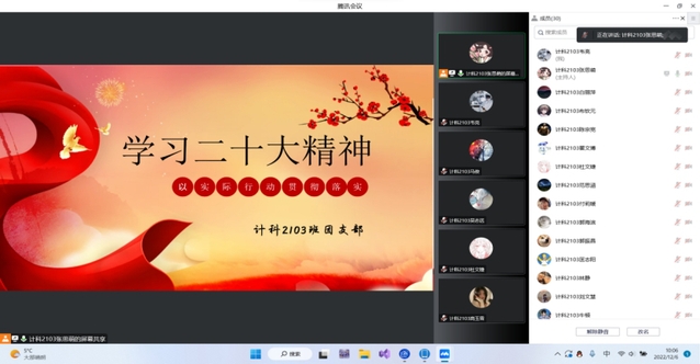 计科2103班团支部开展“学习二十大、永远跟党走、奋进新征程”主题团日活动