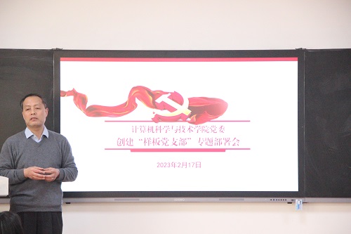 接着,围绕申请创建“党建工作样板支部”条件、创建“样板党支部”工作重点任务指南、创建“样板党支部”工作重点三方面对学院创建“样板党支部”工作进行了详细安排部署。他讲到,党支部书记要高度重视创建“样板党支部”工作,切实提高政治站位、统一思想认识、增强政治担当,以“七个有力”作为工作标准,在教育党员有力、管理党员有力、监督党员有力、组织师生有力、宣传师生有力凝聚师生有力、服务师生有力上下功夫,突出党建工作特色凝练、促进中心工作发展。