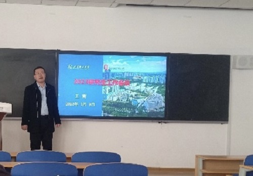 会议上,王雷院长就研究生学位论文送审与答辩工作进一步明确了要求,要求导师严把入口关,预评审专家要严格评审,切实提高学位论文的质量;之后和导师们共同分析了研究生的就业形势,强调导师作为第一责任人要对毕业生进行有效的就业指导,积极推进研究生高质量就业;最后,通报说明了学校1月份发布的研究生导师招生资格审核的最低条件,以及近期学位点评估准备工作的进展情况。