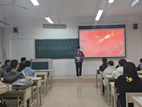 随后,为深入学习贯彻习近平总书记关于党的二十大重要讲话精神,通信2204班王禄衡、赵康、常雨等多名优秀学生代表就如何“进一步提高团员青年理论武装实效,践行‘请党放心、强国有我’的青春誓言”发表演讲,他们表示作为新时代青年应全面把握学习党的十八大以来的历史性成就、历史性变革,切实增强对中国特色社会主义的理论认同、政治认同和情感认同,坚定信心、躬身实践,努力成长为有理想、敢担当、能吃苦、肯奋斗的新时代好青年,争当勤奋学习、自觉劳动、勇于创造的标兵。他们还表示,应积极投身于志愿服务活动,为共筑碧水蓝天、倡树文明新风、服务高质量发展贡献力量。