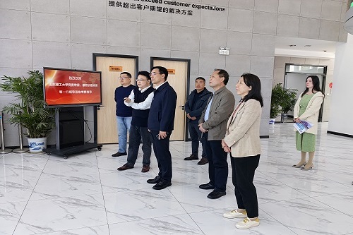 苏文电能科技股份有限公司的负责人对崔焕勇一行到来表示热烈欢迎并陪同参观调研。在座谈会上,公司负责人从业务板块、专业能力、科技创新等方面详细介绍了公司的具体情况,他表示苏文电能是全国数十所高校的指定实习基地、校企合作示范单位,拥有完善的人才培养和储蓄体系。崔焕勇讲到,学校和企业之间要紧密交流,将合作的事项做精做细,形成闭环协同的校企合作关系,和企业一同打造教学实践基地,为企业输入优秀人才,实现校企人才培养的高精度、高准度合作。
