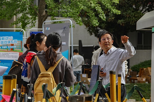 招聘会上,气氛活跃,科技风十足。各企业在展板上列出企业成就和企业文化等信息,纷纷展出自主研发的优秀科技产品,其中包括中国移动和复亚智能联合推出的“无人机自动机场”、来自新华三技术有限公司的商用终端设备等诸多大型科技展品,吸引众多学生前来参观交流。各企业代表人积极交流、互通有无,在宣传自家企业及产品的同时,为企业未来的发展开辟多方位、多层次的合作渠道。