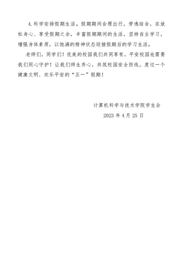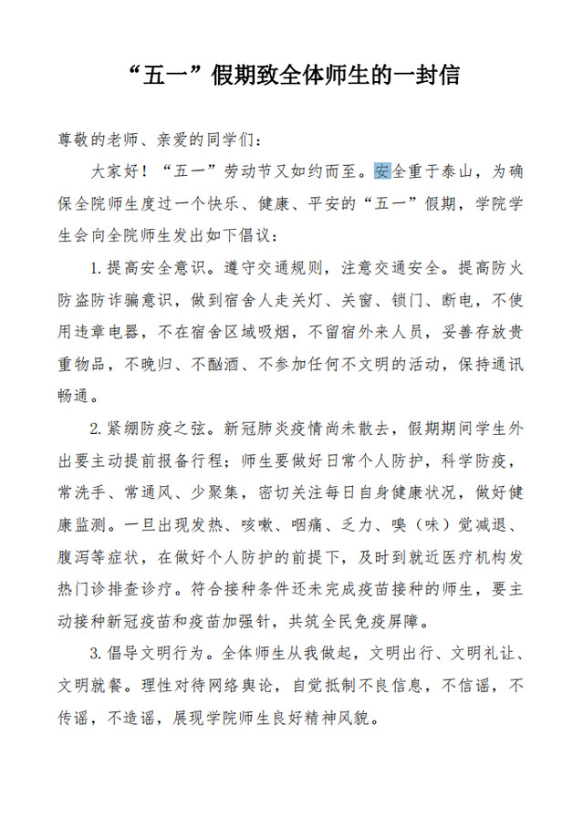 “五一”假期致全体师生的一封信