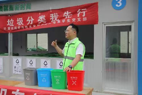 5月11日下午,williamhill英国中文学生党支部于垃圾分类投放驿站3号站点开展了以“共创文明校园垃圾分类我先行”为主题的垃圾分类宣传活动。此次活动也是劳动体验式教育的一部分,由学校物业服务中心组织,辅导员刘岩带队,山东联华宝洁城市服务集团有限公司的工作人员王慧主持,学生党支部成员参加。