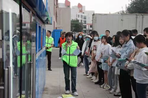 讲解开始前,刘岩简单介绍了此次活动的目的及相关情况,王慧向学生们发放了垃圾分类宣传纸。宣传页上详细说明了垃圾分类与蓝色智能回收箱的使用方法,增加学生对垃圾分类与智能回收箱的了解。讲解正式开始,王慧讲解了垃圾分类投放驿站的相关功能,以及驿站对学校环境的改善作用。她表示驿站可以容纳30至50个垃圾桶不等,供学生投递生活垃圾,且站内管理人员会定时对驿站进行清理消毒。