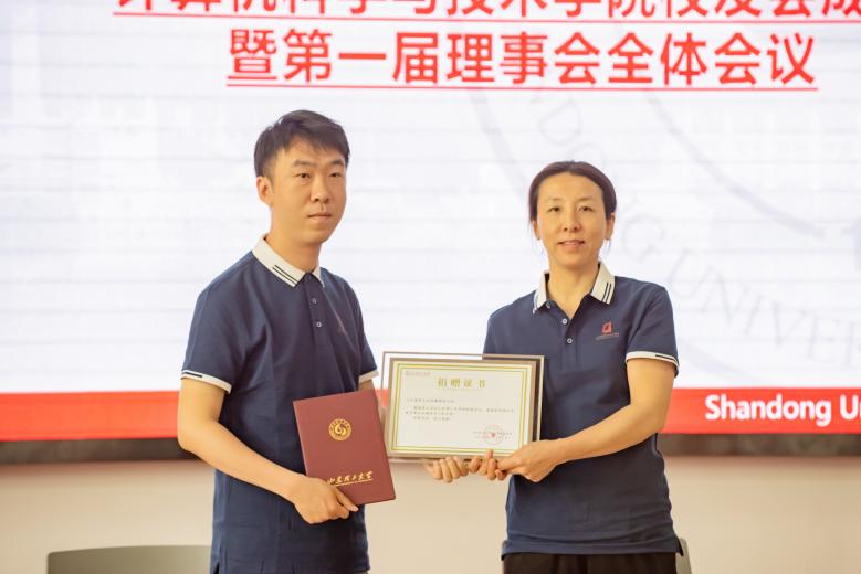 随后,山东晨梦文化传播有限公司捐赠仪式、ACM协会校友捐赠仪式同步举行。山东晨梦文化传播有限公司董事长薛鸿衫与ACM协会校友徐红博上台递交捐款,学院代表为其颁发荣誉证书,对其心系母校、推动母校教育事业发展行为表达衷心感谢。