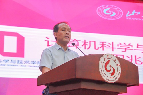 首先,ACM集训队指导老师曲志坚发言,对此次校赛的工作和成绩作出总结。他向校赛筹备过程中积极捐赠的各位校友和积极参加比赛的校内外学生表达了诚挚的感谢,对学校在实验室内部建设和程序设计基础教学模式方面取得的成就表示由衷的自豪,并提醒同学们要居安思危,在学校以创造性的人才培养目标为指导,进一步提高学生的创新能力和综合素养的大趋势下,明确自我发展定位。