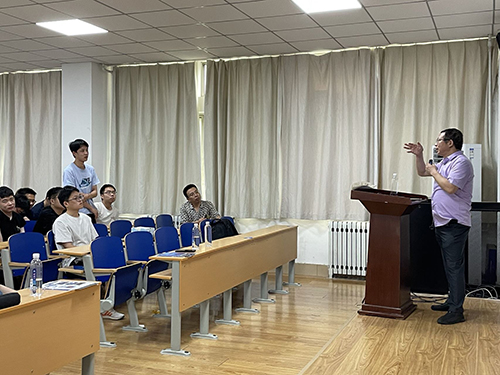 紧接着,潘志庚向参会师生展示了元宇宙领域的众多成果,详细讲述了“电子游戏”、“VR”等产品在实际应用中的优势与创新之处,并分享了精彩案例,使师生们更好地理解和体验元宇宙的实际应用成果。会议最后,潘庆庚同学生就元宇宙的话题进行了互动交流。同学们踊跃地提出自己对于元宇宙与智能交互方面的疑问,潘志庚一一做出解答,并表示希望同学们继续距厉奋发,期待与同学们于南京信息工程大学相遇,共赴知识巅峰。
