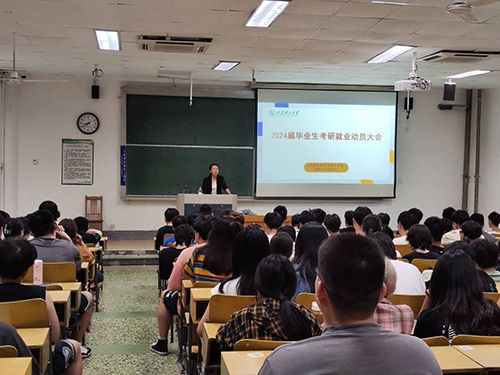 6月14日-15日,williamhill英国中文于3号教学楼113教室分专业举行了2024届毕业生考研就业动员大会,学院党委副书记钟丽霞主持会议,全体20级学生参加会议。