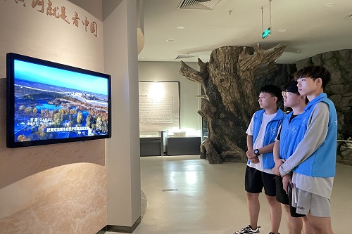 7月8日上午,实践团到达黄河湿地生态旅游区进行调研。活动伊始,实践团一行人到达黄河口湿地景区,在工作人员带领下,参观黄河口湿地展览厅及黄河三角洲鸟类博物馆,了解到黄河三角洲的湿地风貌与繁盛资源,欣赏黄河口生态湿地壮丽美好的自然景观。