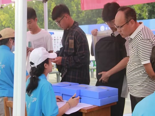 此外,学院在三号体育场内设置新生报到处,以便新生完成报到流程。除报到处外,会场内还设有家长休息区、抽奖互动区、学院成果展示台和新生合影留念区,学生可在报到工作完成后参与抽奖活动,并和家长一同参观学院会场,了解学院基本情况和特色。在整个迎新工作中,学院志愿者始终保持严要求、高标准,努力做到热情、细致、规范、有趣,向新同学展示出计算机学子独有的精神风貌。