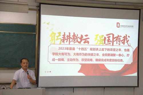 针对新学期师德师风建设工作,田兆富对全体教工提出四点要求。一是忠诚人民教育事业,全面贯彻党的教育方针,落实立德树人根本任务,带头培育和践行社会主义核心价值观,坚持以德立身、以德立学、以德施教、以德育德,为人师表,充分展现新时代“四有”好老师的良好形象。二是爱岗敬业,教书育人,坚持把思想政治工作贯穿教育教学全过程,注重全程育人、全方位育人,加强课程思政研究,使课程教学与思想政治教育同向同行。三是坚守教育教学一线,切实履行教师岗位职责和义务,高质量地完成教育教学工作任务,努力推进教育教学改革创新,在教学改革、教材建设、实验(实训)室建设、提高教育教学质量等方面不懈努力。四是积极实施素质教育,加强以学生为中心的教学范式改革,敬重学问、关爱学生,促进学生全面发展,培养学生成为国家栋梁。
