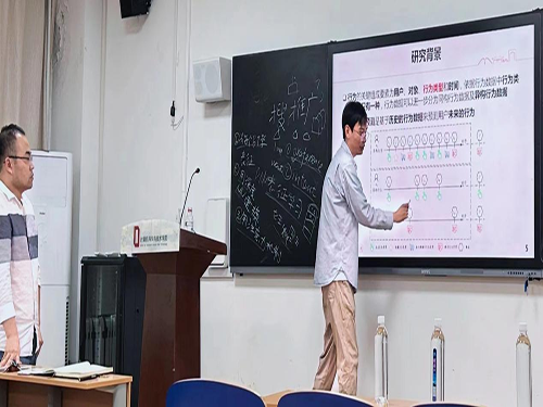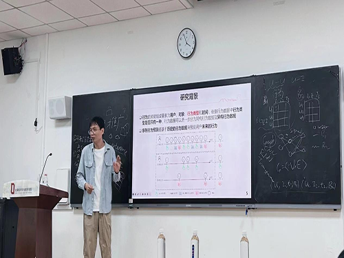 会议伊始,刘皓冰向师生们简述自己的学术背景、工作经历以及在数据挖掘、深度学习和物联网领域的研究成绩。他结合自身工作经验以及相关领域的研究课题经验,向与会人员论述了序列行为预测的重要意义及广泛应用。随后,他对序列行为预测的概念、方法和现有研究进展进行了深入阐述,结合实例分析了现有方法的弊端,即建模多种行为间关联关系时未考虑关联关系的多元性,直接进行粗粒度建模,导致模型学习得到的不同类型行为间的关联关系不精准,损害模型的预测性能。