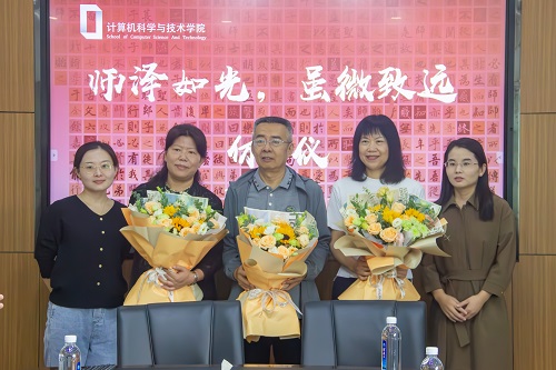 在热烈的氛围中,田兆富为荣休教师送上荣休纪念礼物,衷心希望四位老师生活幸福、身体健康,欢迎老师们多关注学院的发展,常回家看看。新入职教师为荣休教师献上鲜花,衷心祝福四位老师荣休快乐,并表示在以后的职业生涯中不忘前辈嘱托,潜心教书育人,跑好立德树人接力赛。