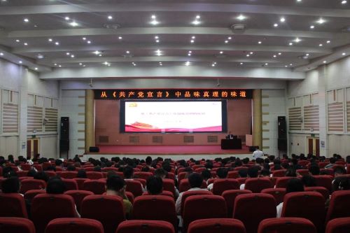 会上,王振以从《共产党宣言》中品味真理的味道为主题,从现阶段党的思想学习的方针政策出发,带领参会学生走近为共产主义的诞生与发展做出重大贡献的伟人先贤,引导学生深入学习《共产党宣言》与中国近现代史。他以多位前辈的光辉事迹为引,结合国家发展历程与思想建设举措,详细阐述艰苦奋斗、无畏忘我的崇高精神在真理发展过程中的重要作用,指出《共产党宣言》的重要地位,明确其框架内容,剖析宣言中的各处重难点。王振强调,团员与青年的理论学习应做到“三突出、三提升”,扎实开展、稳步推进。