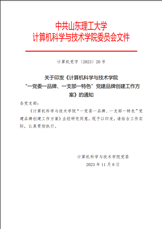 计算机学院“一党委一品牌、一支部一特色”党建品牌创建工作方案