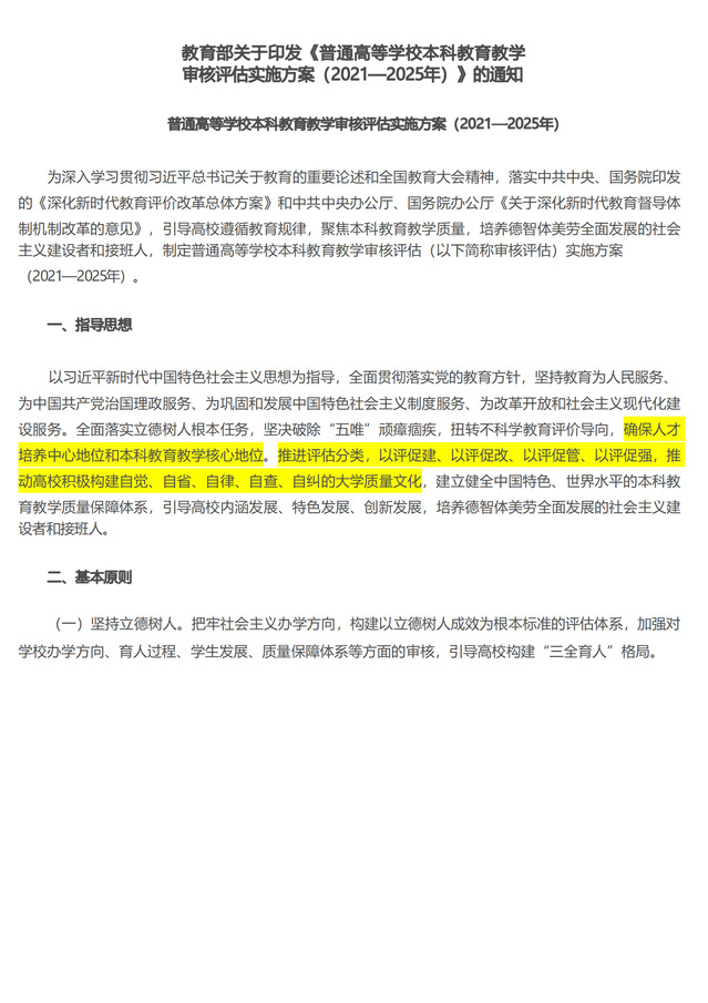 教育部关于印发《普通高等学校本科教育教学 审核评估实施方案(2021—2025年)》的通知