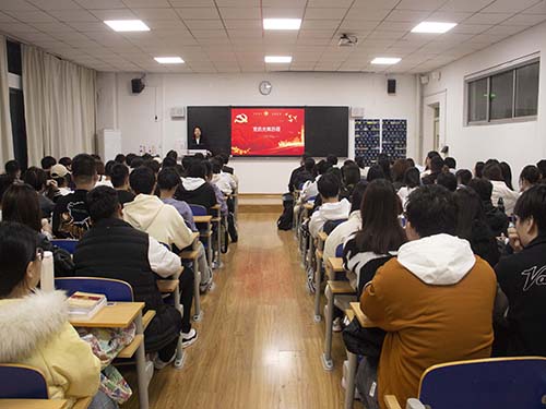 会议伊始,钟丽霞从中国共产党诞生的历史背景、中国共产党的建立及发展史引出了党课的第一个专题:党的光辉历程。她将中国共产党诞生的时代背景延伸到1840年鸦片战争,进一步说明了中国共产党创立的历史必然性,并通过视频的形式,形象生动地向同学们反映了党为民族独立、人民解放英勇斗争的艰难历程。随后,她从党的建立到党组织的不断发展壮大的历史轨迹,论述了党的先进性,并要求入党积极分子在今后的学习生活中能够以身作则,为同学们做好服务工作,切实起到模范带头作用,为学院的发展建设贡献自己的力量。