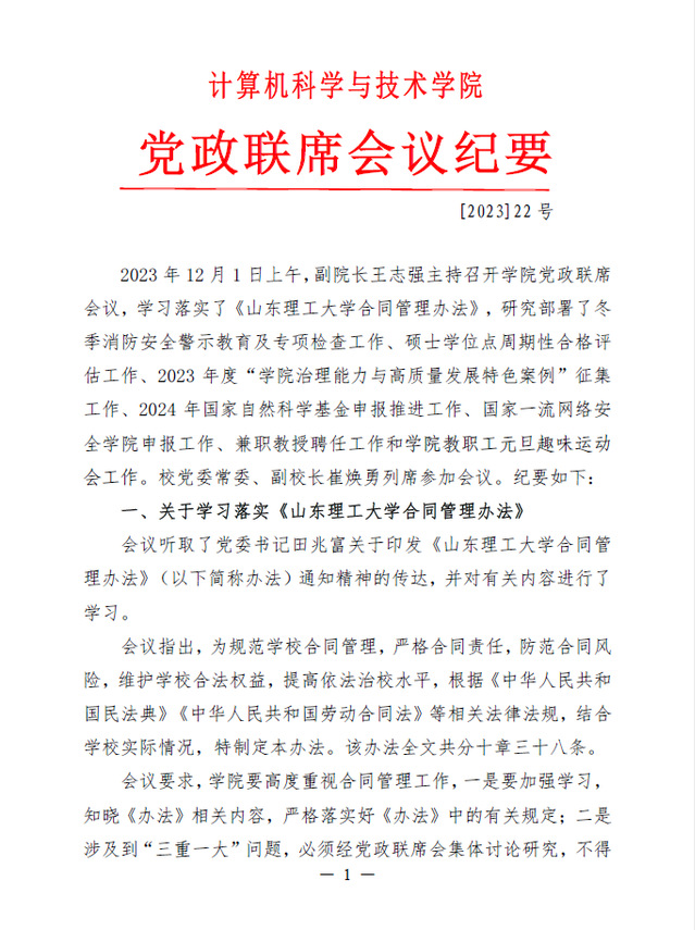 党政联席会议纪要〔2023〕22号