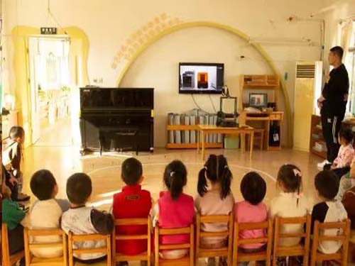 随后,邵楠利用3D打印机进行现场打印模型展示,小朋友们争先恐后地排队观看打印过程。各式各样的动物模型新奇有趣,小朋友们被深深吸引,不时鼓掌、发出惊叹,与志愿者热情互动,课堂气氛活跃。活动最后,志愿者们为小朋友送上了3D打印技术制作出的各种小礼物,大大拉近了现场小朋友们与高科技的距离。