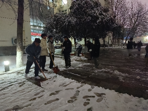 12月14日晚,williamhill英国中文于9号教学楼东西两侧开展了雪天除冰扫雪志愿服务活动,计算机学院辅导员刘岩带领学院部分青年志愿者参加。