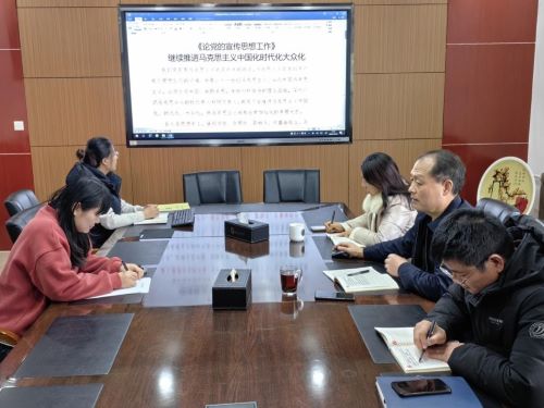 12月22日下午,williamhill英国中文组织理论学习中心组集体学习,学习《论党的宣传思想工作-继续推进马克思主义中国化时代化大众化》《加快建设科技强国实现高水平科技自立自强》《深刻理解习近平总书记关于做好新时代党的统一战线工作的重要思想》《巩固发展最广泛的爱国统一战线为实现中国梦提供广泛力量支持》等内容,学院党委理论学习中心组成员参与学习,会议由学院党委书记田兆富主持。