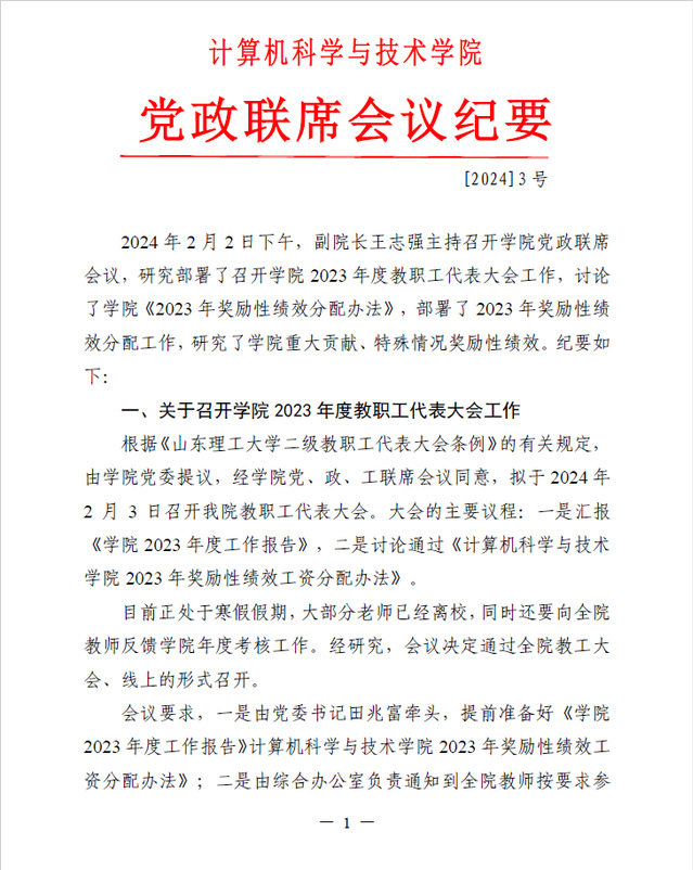 党政联席会议纪要〔2024〕3号