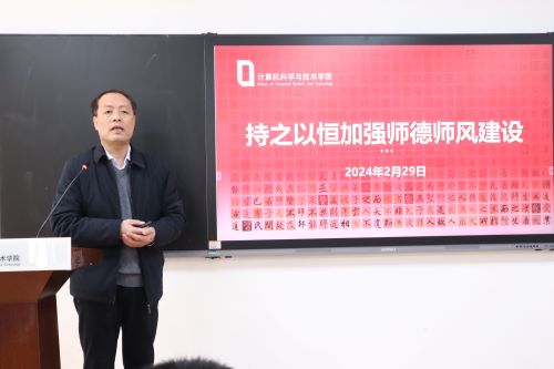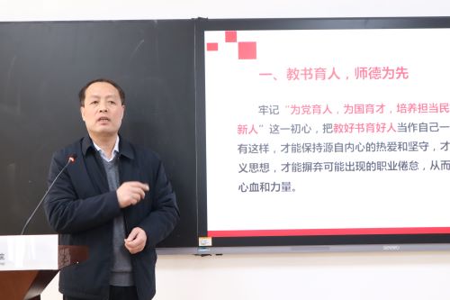 会议伊始,田兆富首先阐释了教师的使命和责任,强调师德师风建设的重要性,呼吁全体教师以身示范,向学生传递正确世界观、人生观和价值观。针对新学期师风师德建设工作,田兆富提出,教书育人,师德为先,全体教师要牢记“为党育人,为国育才,培养担当民族复兴大任的时代新人”这一初心,保持内心的热爱和坚守,清除拜金主义思想,摒弃可能出现的职业倦怠,把教好书育好人当作自己一生追求的目标。