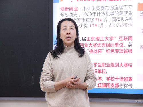 随后,钟丽霞以学院2023年目标任务完成情况为切入点,详细介绍了2024年学生工作思路与打算。她强调,全体教职工应在一线工作中贯彻落实“六线”,找准问题,着力提升工作亲和力和有效性。钟丽霞就近几年科技竞赛参与获奖情况、毕业生就业情况、考研情况做出对比。她指出,2024年要继续加大科创竞赛投入力度,积极鼓励、支持、带领学生参加各项创新型赛事,坚持立德树人,紧抓学风建设,努力实现“三升三降”目标,深入实施“访企拓岗”,从家校联动、就业指导、拓岗增容和灵活就业四方面组织实施,促进毕业生就业率和就业质量双提升。同时加强工会、校友工作,以及2024年招生工作。