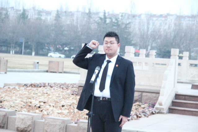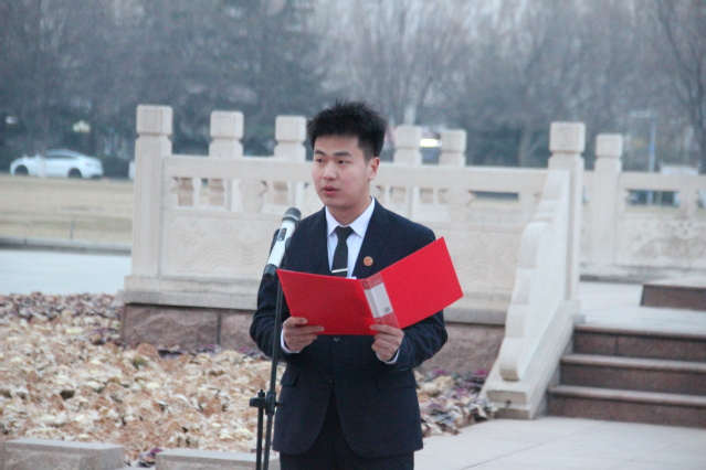 升旗仪式第四项,青年学生代表邵楠带领全体人员重温入团誓词。