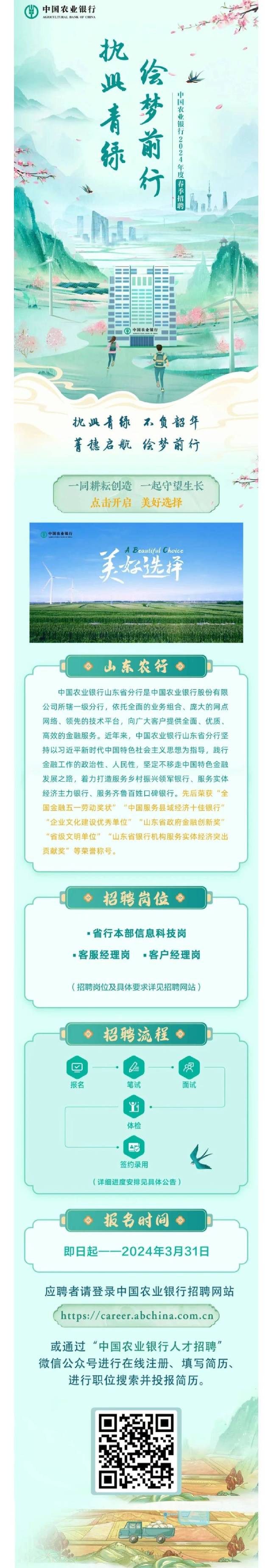 中国农业银行山东省分行2024年度春季招聘开始啦!