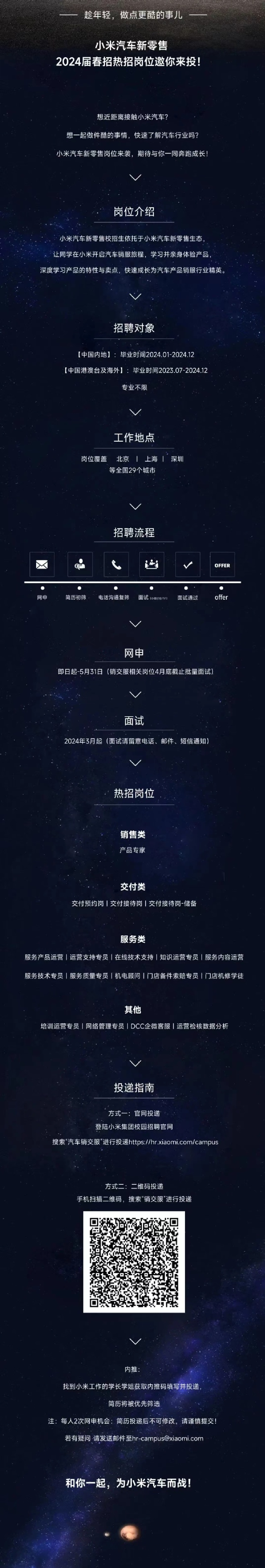 小米汽车新零售2024届春招热招岗位邀你来投