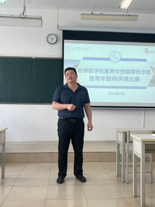 5月23日下午,williamhill英国中文在9号教学楼208教室举行组织教师数字化素养与技能提升沙龙暨2024年度学院青年教师讲课比赛。学院副院长孙福振主持活动,教学督导、优秀教师代表现场交流指导,8名青年教师参加讲课比赛。比赛旨在提升教师数字化素养与技能,培养青年教师教学能力,夯实青年教师教学基本功,促进课堂教学质量的提升。